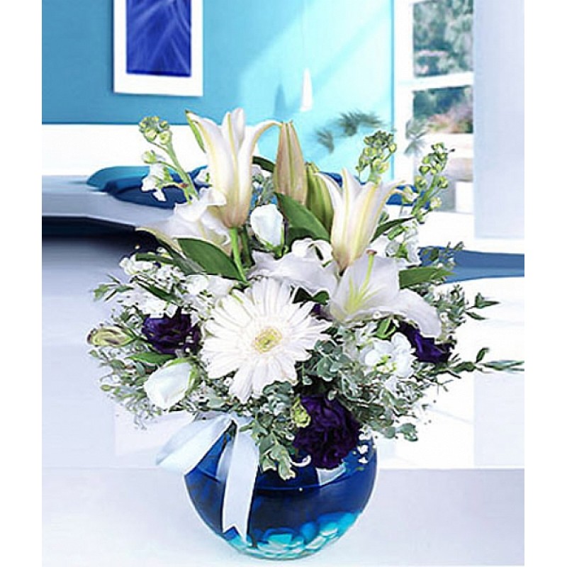 Beyaz Lilyum ve Kırmızı Gül Aranjman