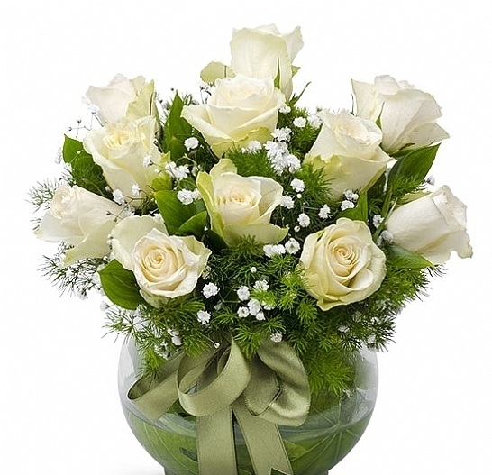Vazoda 12 Beyaz Gül Lilyum Aranjman