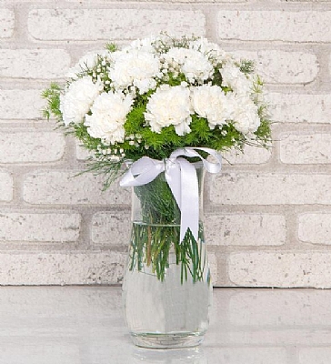 Vazoda 14 Beyaz Karanfil Aranjman