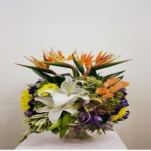 Fanusta Beyaz Gül ve Lilyum Aranjman